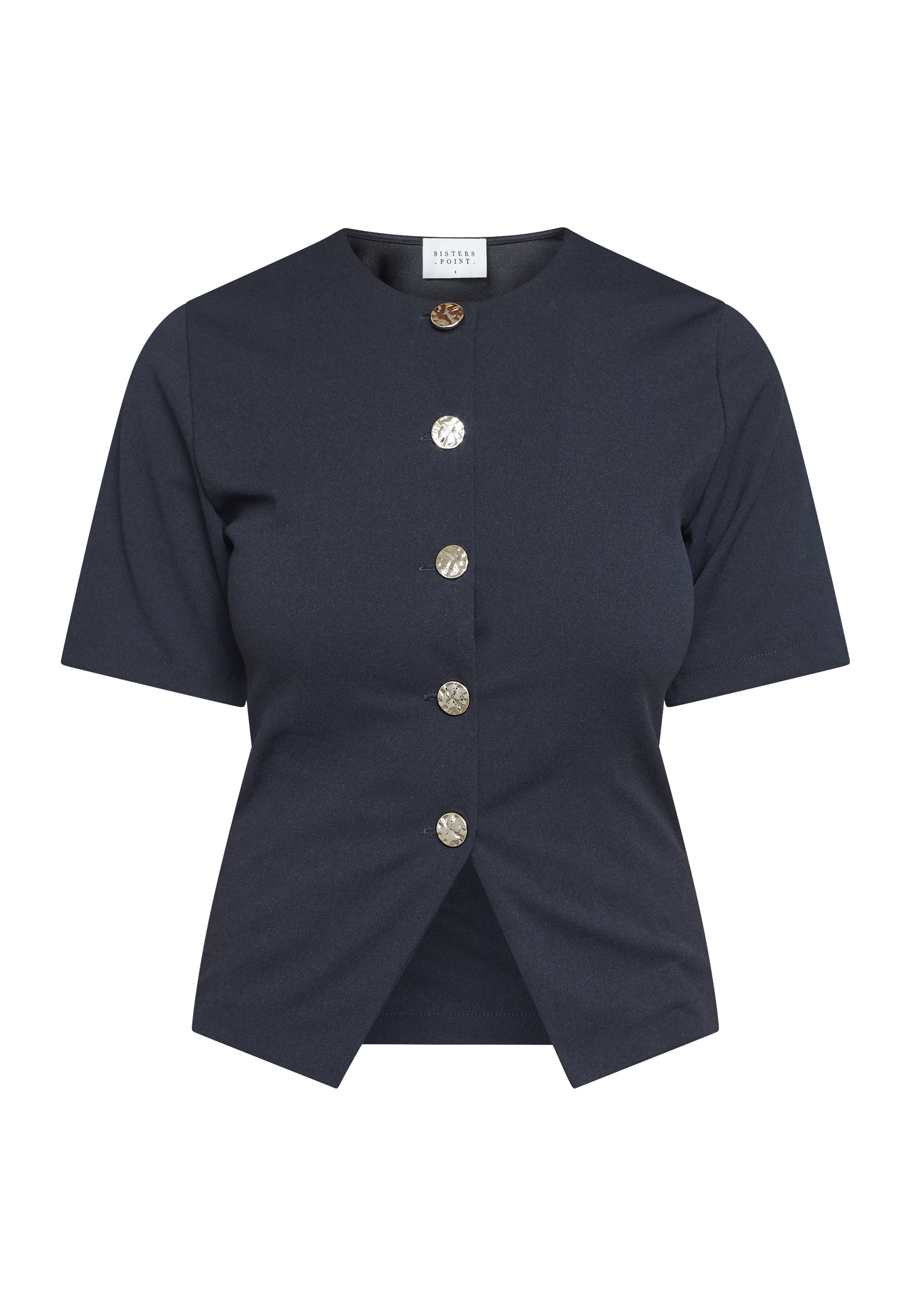 Gova-Top är en snygg topp med korta ärmar och rund halsringning. Toppen har knäppning med dekorativa knappar och en åtsittande passform som framhäver midjan.
