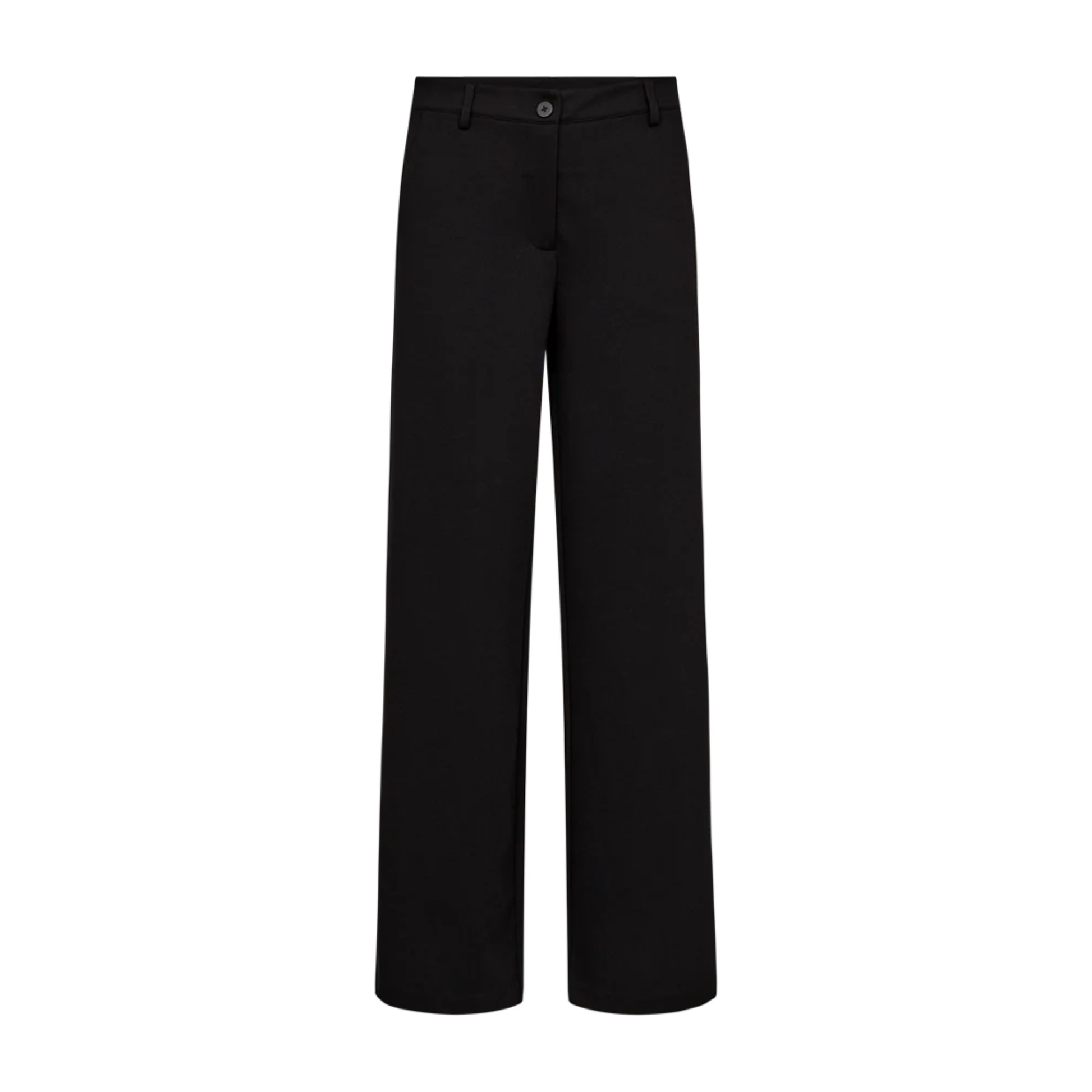 Byxor från Freequent i ett mjukt material. Byxorna har en enkel silhuett med dragkedja och knappstängning, sneda sidfickor, rak passform och hög midja.