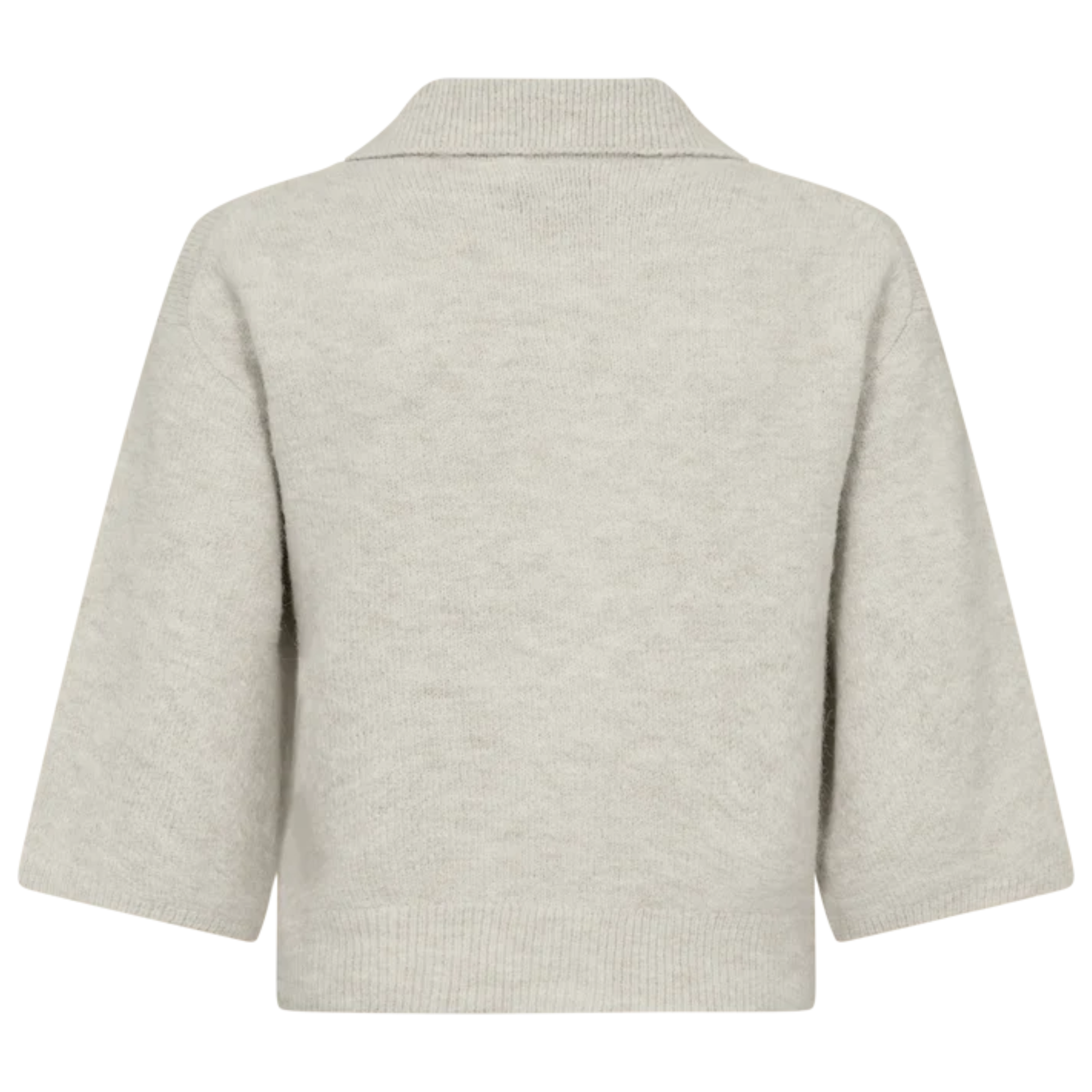 Kofta från Freequent i ett mjukt, stickat material. Koftan har en enkel silhuett med trekvartsärmar, vida ärmar, en bred krage, knappknäppning framtill och en normal passform.