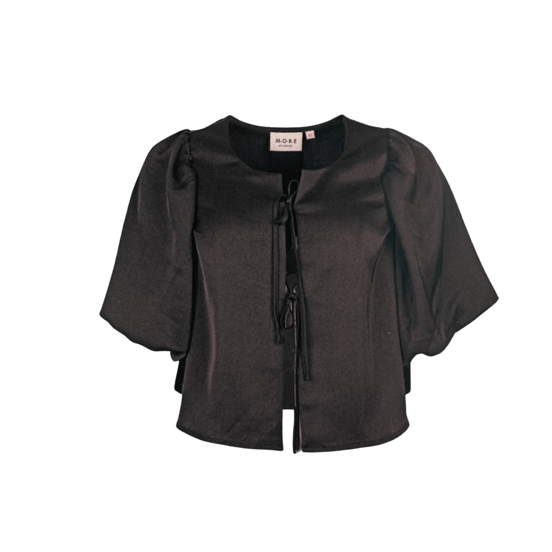 Kortärmad knytblus i satin från More by Mingel.