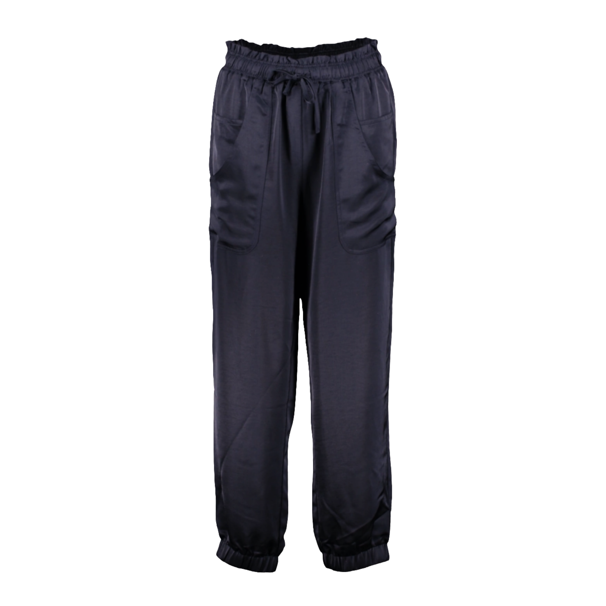 Satinbyxa med resårmidja och knytband från More by Mingel. Resårmudd nedtill och sidfickor.