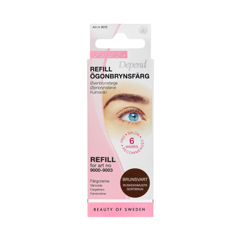 Har du använt Depend Everyday Eye Ögonbrynsfärg art nr 9000-9003 och har väteperoxid kvar men slut på färgcremen? Då är denna refillförpackning perfekt som innehåller färgcreme och applikatorborste. Ögonbrynsfärgen ger dig naturligt markerade och fylliga bryn på bara några minuter, en permanent färgning som håller i upp till 6 veckor. Finns i färgerna svart, brunsvart, mörkbrun och brun.