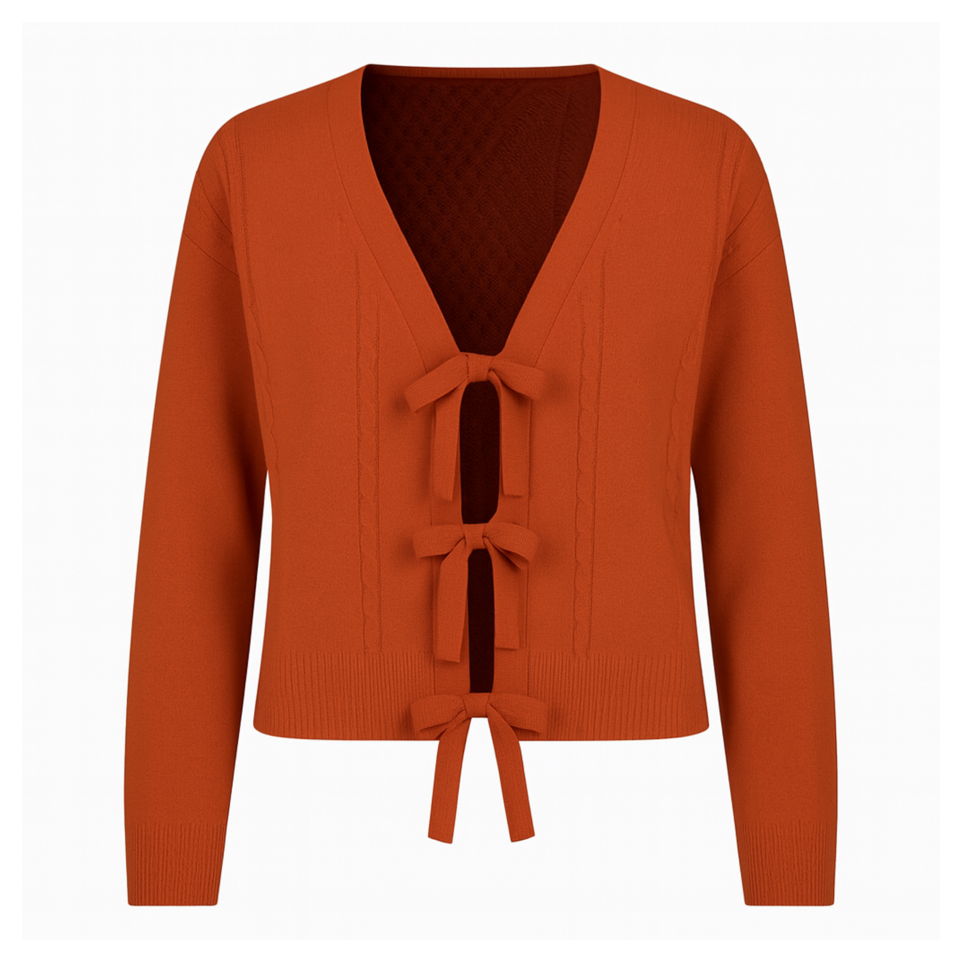 Stickad knyttop med flätmönster.