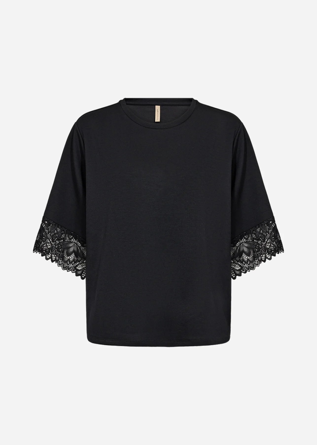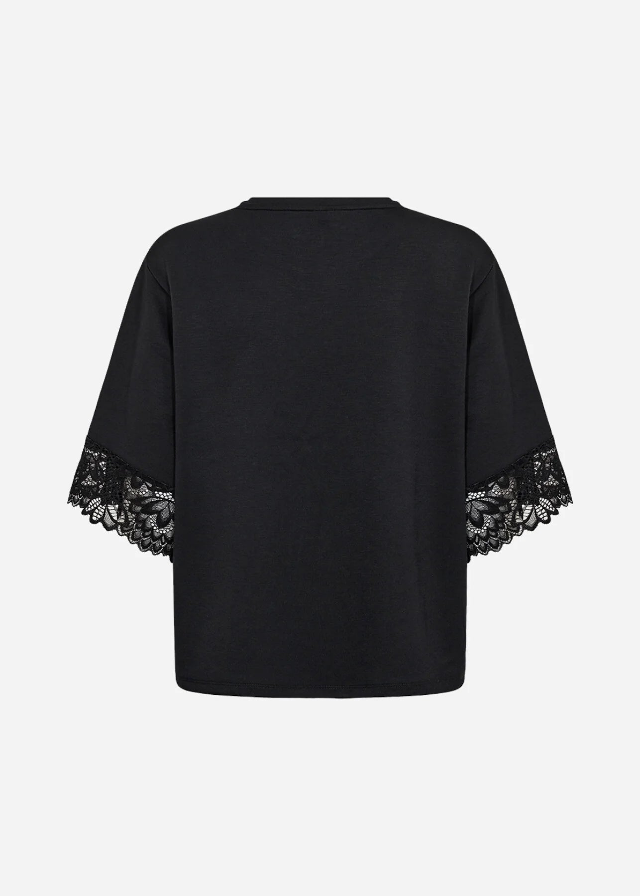 Den har eleganta spetsdetaljer på ärmarna och en klassisk rund halsringning. Denna coola design passar bra till både casual denim eller snygga byxor för olika looks.
