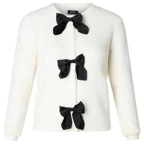 Ett festligt plagg med en mysig känsla. Denna Yest-kofta är tillverkad av ett mjukt, pälsklädt tyg som känns lätt och bekvämt. Tryckknappsknäppningen och de kontrasterande rosettdetaljerna gör den till ett riktigt blickfång. Perfekt för festsäsongen när du vill ge din outfit det där lilla extra.